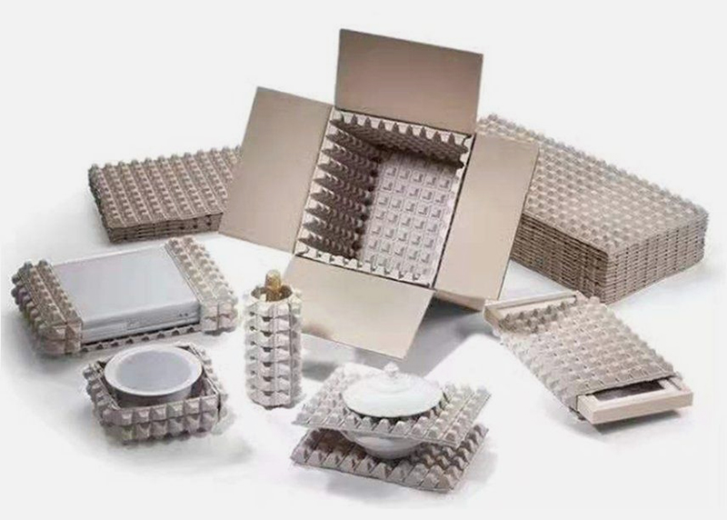 The automatic Industrial Packaging pulp molding production line is composed of a pulping system, forming system, drying system, vacuum system, high pressure water system and air compressor system. It is used to produce electronic product packaging, small home appliance packaging, industrial parts shockproof inner packaging, paper care, and paper lining products. Using waste paper such as waste newspapers, waste carton paper, office paper, scraps, etc. as raw materials, it is formulated into a slurry with a certain concentration through hydraulic disintegration, filtration, water injection and other processes. Wet blank products are formed through vacuum on the metal mold. The billet is dried by the drying line and then completed.