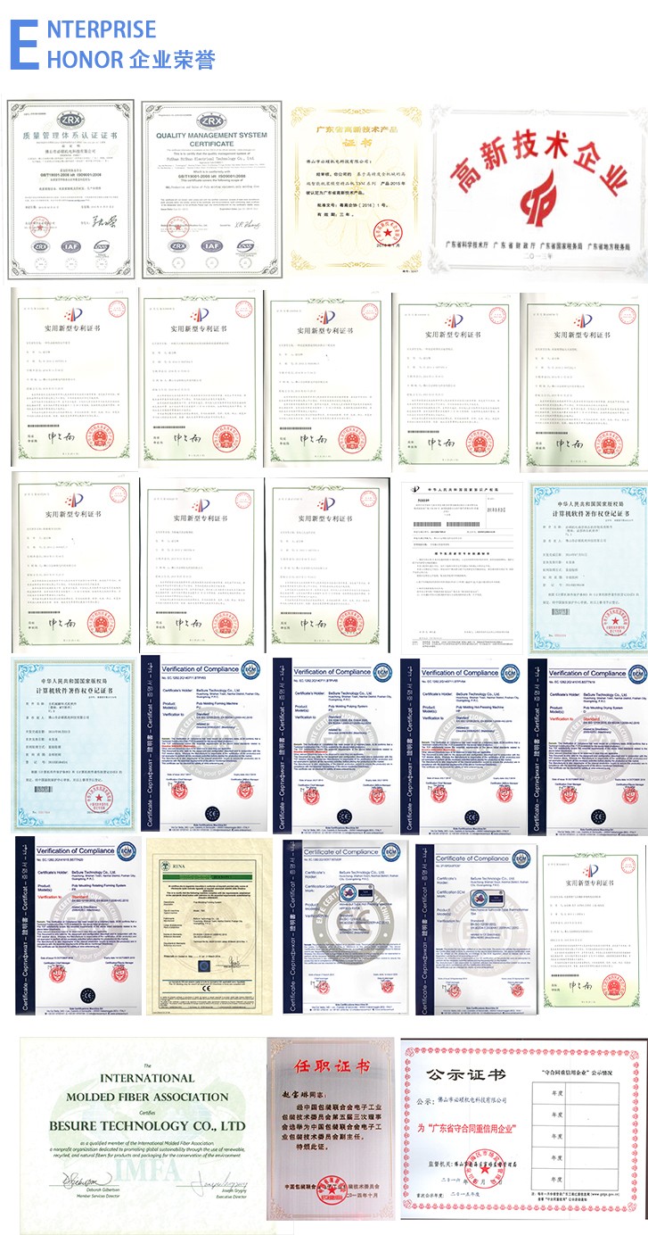 Foshan BeSure Technology Co., Ltd. has been focusing on developing products regularly, of which Pulp Tableware Machine, Pulp Molding Machinery, Egg Tray Machine, Pulp Molding Production Line is the newest. It is the newest series of our company and is expected to surprise you. Our product can be tailored to suit you perfectly. BESURE has been dedicated to the design, R&D, manufacturing, and updates of Pulp Tableware Machine, Pulp Molding Machinery, Egg Tray Machine, Pulp Molding Production Line. We fully hope that we can satisfy customers from different fields, countries, and regions by offering them high-quality products and professional service. If you have any questions or problems, please contact us at any time through the contact information listed on our website.