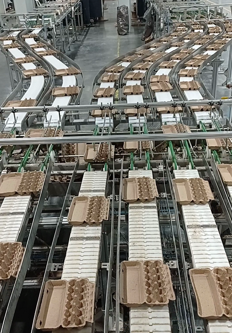 The fully automatic high-speed egg box production line independently developed by BESURE Technology is a pulp molding equipment specializing in the production of 6, 8, 10, 12, 15, 18 egg boxes. It integrates pulping, forming, drying, hot pressing and stacking, with high automation, simple operation and intelligent control.