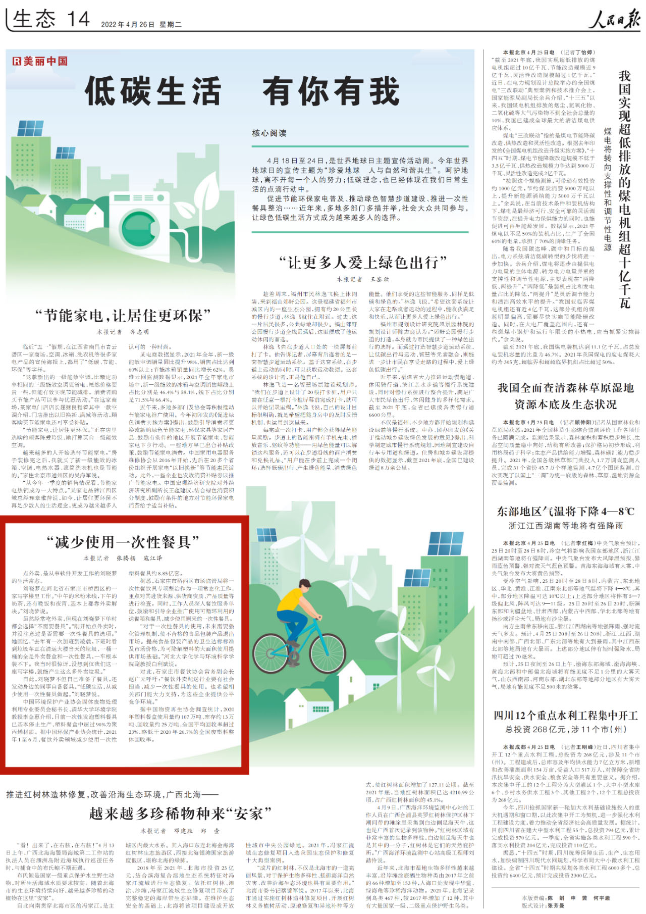 On April 26th,2022, the People Dairy published a report entitled“low carbon life with you and me ”in the ecological edition.The report pointed out degradable plastics should be provided with a market basic.
